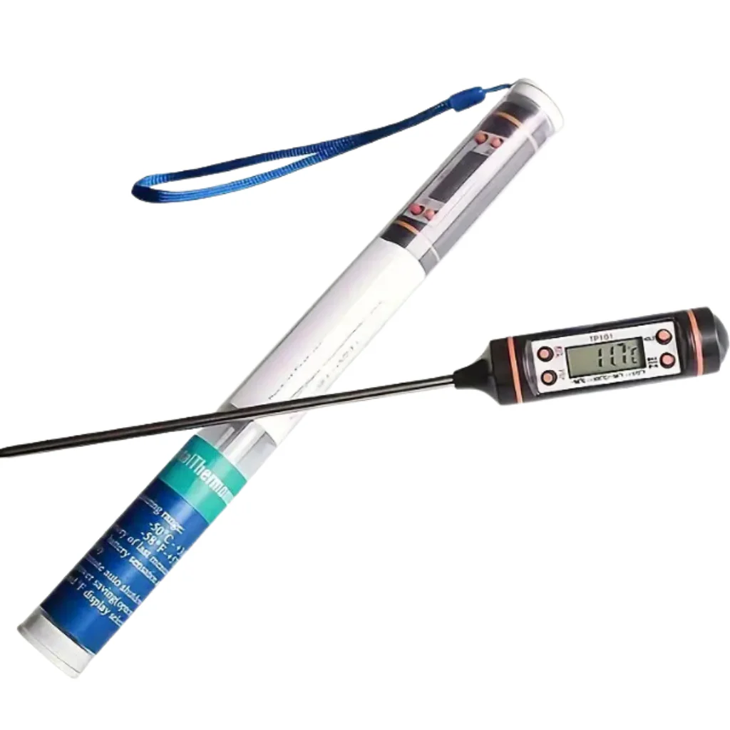 Essential tool to monitor wax temperature for safe candle making.